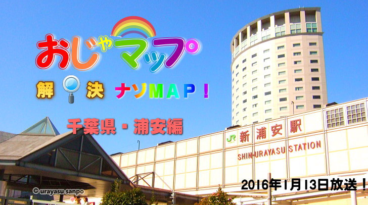 2014年放送、おじゃマップ(100円バスマップ)に続き、浦安が再び取り上げられました。内容は、『解決ナゾMAP』という企画で、元スマップの香取さんと山崎さんが浦安駅周辺で気になることの聞き込みを行い、実際に足を運びナゾを解決する番組でした。