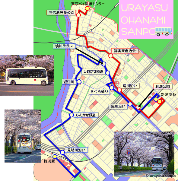 おさんぽバス沿線は浦安の桜の名所が目白押し! お花見散歩もいいけど、ちょっと距離が長いな~という人にオススメなのが、このおさんぽバスです。
