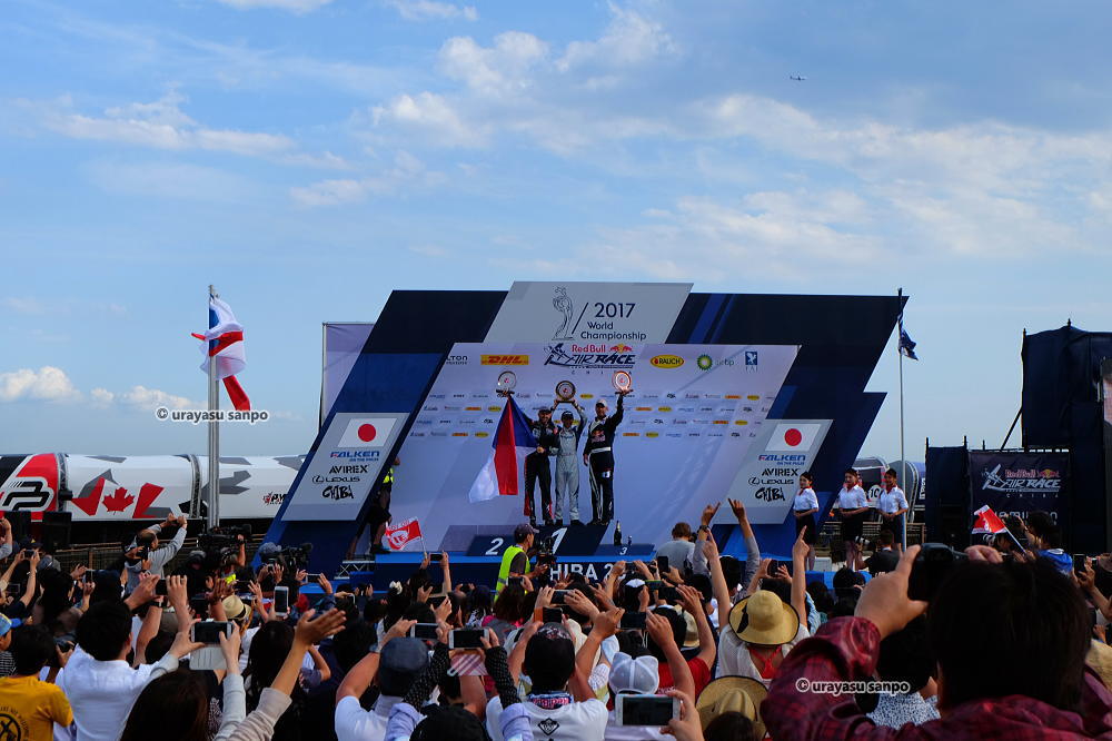 室屋選手の2連覇で幕を閉じた2017千葉大会ですが、パブリックビューイング浦安会場では嬉しいサプライズがありました。特設ステージでは表彰台が設置され、表彰式やシャンパンファイトが行われたのです。 今年は、すでに表彰台が設置され、去年と同じように表彰式を行う予定です。