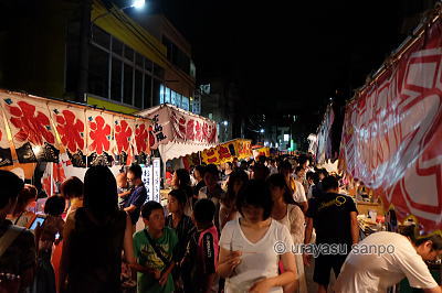 浦安の下町風な元町地域で行われる盆踊り大会は、予想以上に大きい櫓や、多い参加人数、たくさんの屋台で賑わいます。海辺DE盆踊り大会でお祭りの虜になった方、当日行けなった方、もっと屋台の味を楽しみたい方にお勧めです。