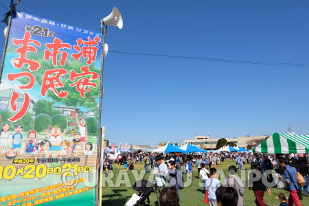 浦安公園は、浦安市役所の隣りにある公園です。中央の芝生には休憩できる広場が設置され、その周囲には約90を超える屋台(飲食が中心)が設置されます。