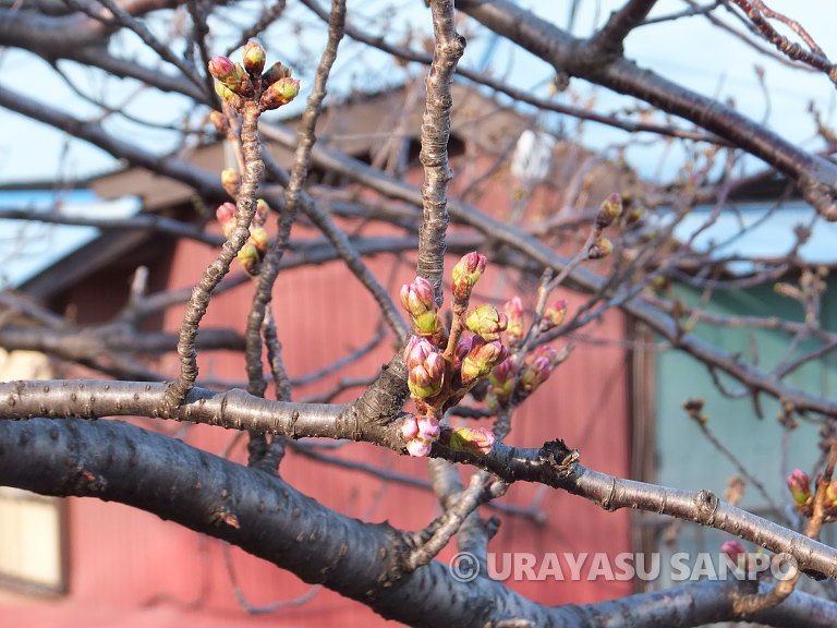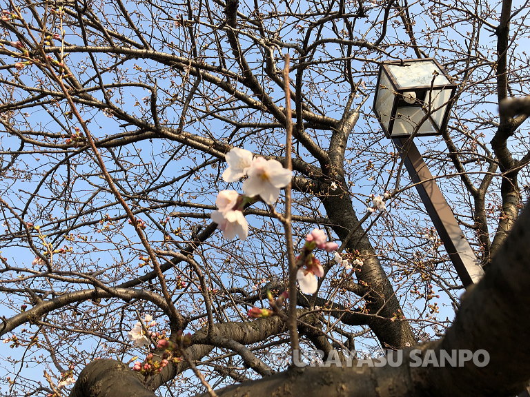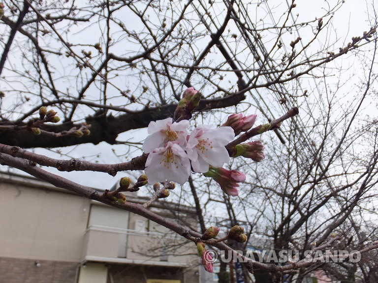 一つの木に数輪ですが開花がありましたので、浦安市の桜開花日は3月22日ということで良さそうです。予想は3月24日でしたが気温が予想以上に上がり外れてしまい大変申し訳ございません。