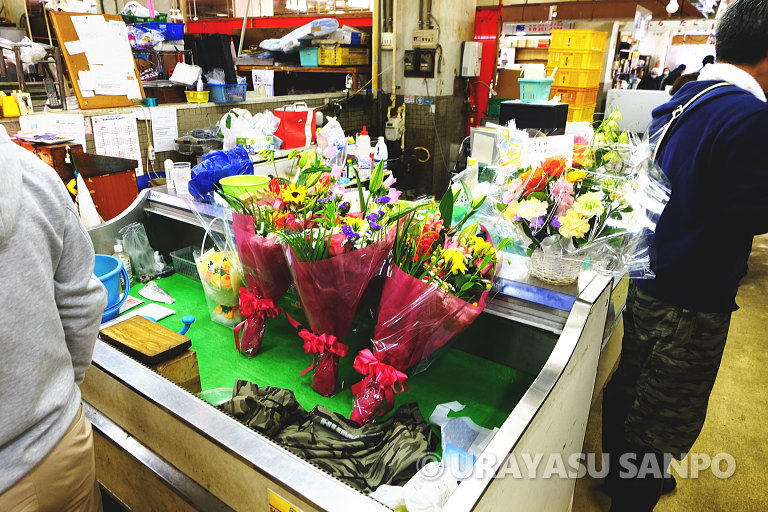 場内でも一番賑わっていたのはよっちゃん食堂かもしれません。浦安魚市場は食べるところが現在、中国飯店とよっちゃん食堂しかないのでどちらも行列ができていました。
