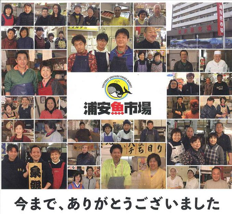浦安魚市場の歴史に幕が閉じようとしています。浦安橋のたもとにあった頃から数えて65年。もとはフラワー通りや猫実の庚申塚あたりにもあったと言われているので、市場としてはそれ以上の歴史にピリオドが打たれようとしています。